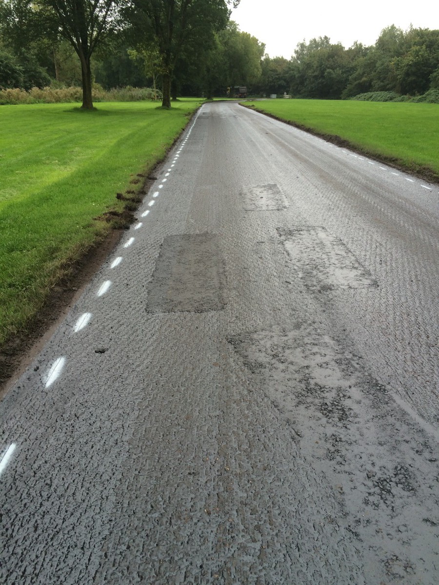 Een van de middelen om asfalt in topconditie te houden is het aanbrengen van een slijtlaag