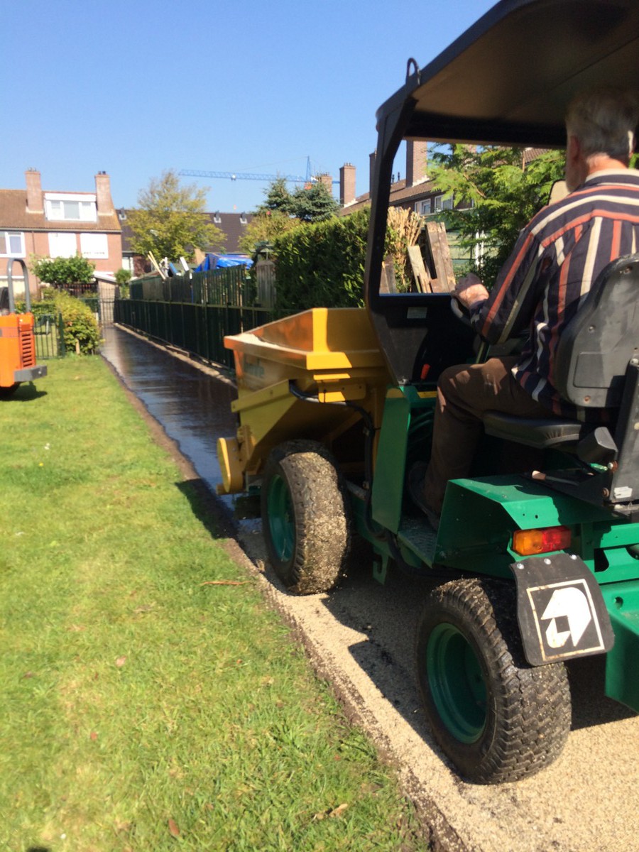 Allereerst waren kleinschalige bestratingen en onderhoud aan paden de voornaamste werkzaamheden. Intussen gaan wij grootschalige reparaties, renovaties, nieuwbouw en reconstructie van wegen en terreinen niet uit de weg. En het materieel hiervoor meegegroeid.