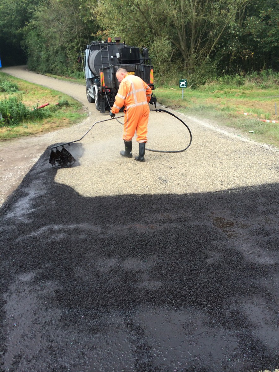 Wij beschikken over asfaltafwerkmachines ( 1,0 – 5,0 m), bijbehorende walsen ( 1,5 – 13 ton), kleefapparatuur, Infraroodverwarming in combinatie met een Hot Box, minirupsgravers, minishovel, rupsgravers en het bijbehorende transportmaterieel om op de werken in te zetten. Onze klantenkring is toegenomen en er zijn vele mooie werken uitgevoerd.